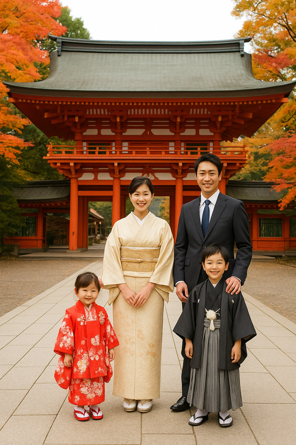 秋の紅葉と神聖な雰囲気が相まって子どもの成長を祝うかけがえのない1日が過ごせます。