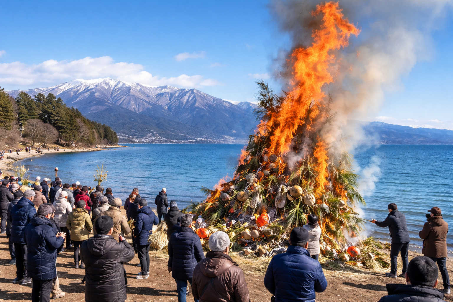 正月飾りや書き初めを燃やしその火で焼いた餅を食べると一年健康に過ごせるといわれています。